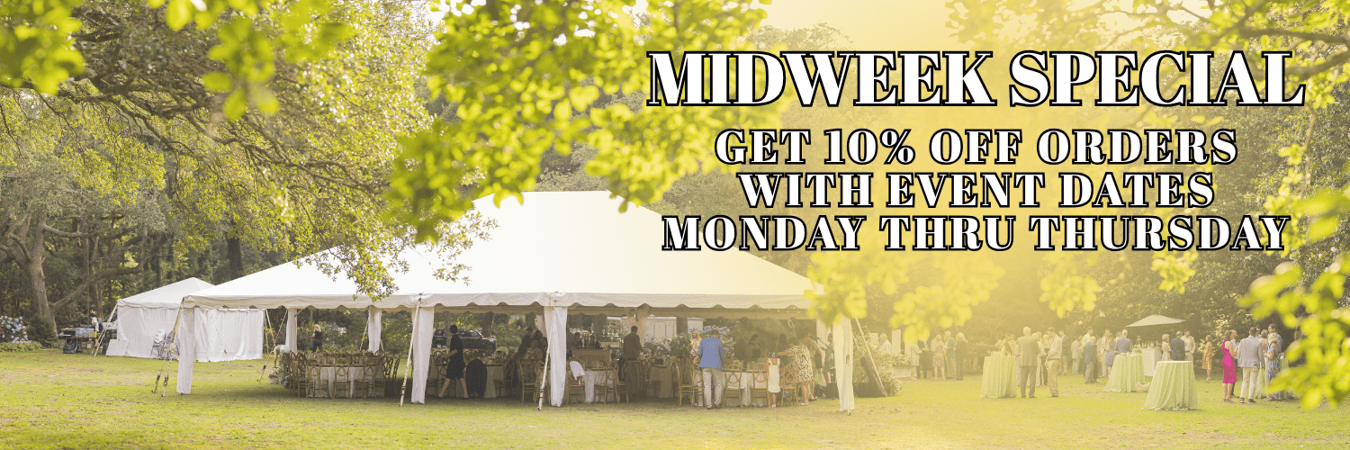 We carry a wide variety of tents, tables, chairs, dance floors, lighting, glassware, flatware, china, linen, staging, and other items you want or need for your wedding, event, party, or private function. We are the exclusive provider of pool cover dance floors for all OBX weddings.