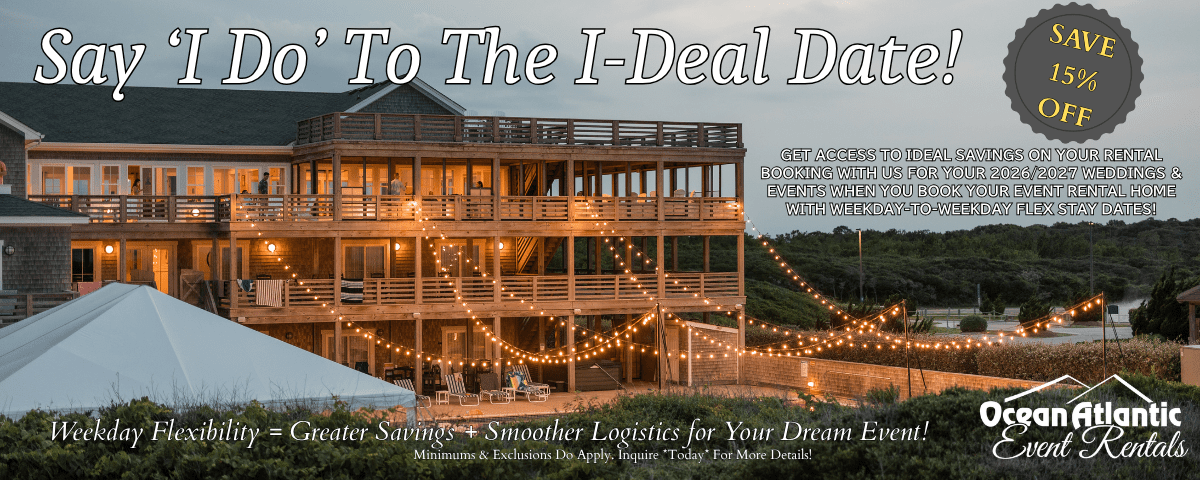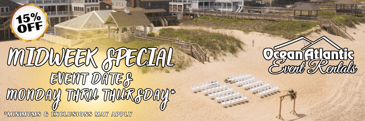 Ocean Atlantic Event Rentals is a full-service wedding and event rental company located in Kill Devil Hills in the heart of the Outer Banks of North Carolina. We provide wedding rentals to the entire Outer Banks of North Carolina from Carova in the 4×4 area to Hatteras Island including all your favorite OBX beach towns like Kill Devil Hills, Kitty Hawk and Nags Head.